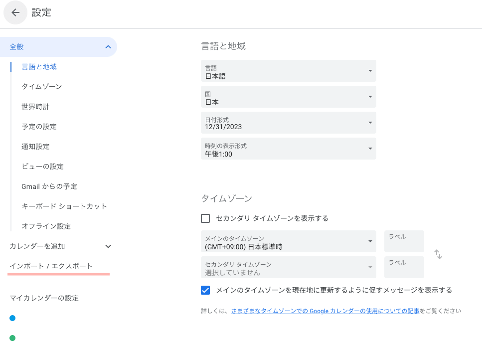 それでは出来上がったCSVファイルをGoogle カレンダーにインポートしてみましょう。