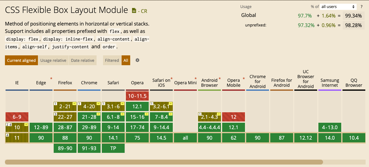 Flexboxはかつて多くのブラウザでベンダープレフィックスが必要でしたが、2021年現在すべてのモダンブラウザで対応済みです。